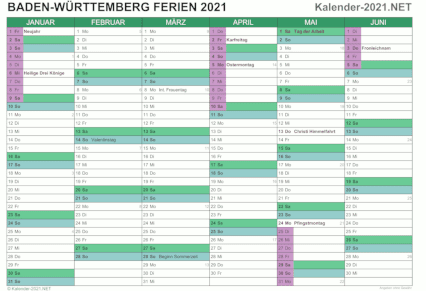 Kalender 2021 mit schulferien bw.
